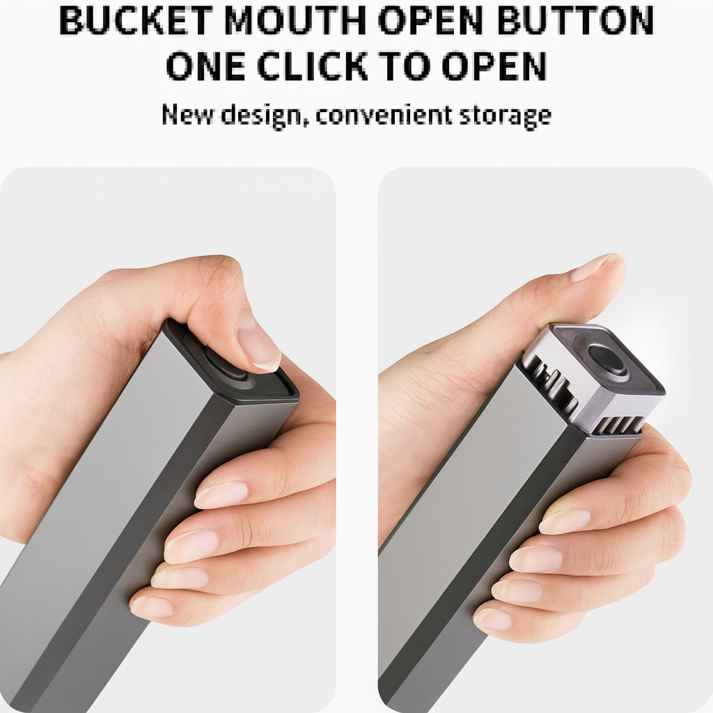 A single push-to-eject mechanism reveals your entire toolkit with one satisfying click — no fumbling, no clutter, just instant access. Every component has its own secure slot for a clean, organized workspace.